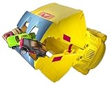 When this push toy first came into the office this summer we were really thrilled. Finding fun toys that are right on target for toddlers is one of toughest tasks we have each year. Much like the Blue Chip Corn Popper from Fisher-Price, the Color Roller doesn’t require batteries to make something happen. It makes a clicking noise when it’s pushed (one of our testers that lives in an apartment thought the noise was annoying after a while…so you do have judge your tolerance for “toy” noise). When you look at the roller part of the toy when it’s not in motion you can see many smaller cylinders of blue, yellow, and red–but when you push the roller – amazingly the colors of the rainbow appear. High marks to this elegantly designed toy.